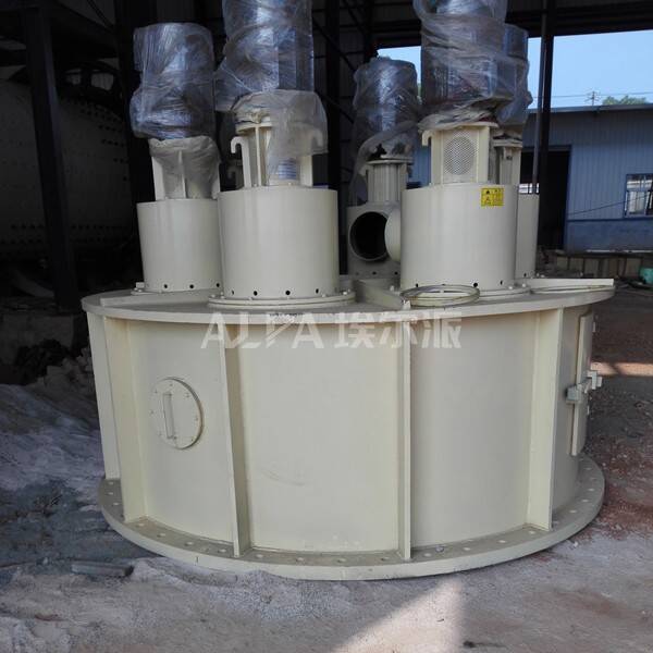 分級機與旋風分離器、除塵器、引風機組成一套分級系統。物料在風機抽力作用下由分級機下端入料口隨上升氣流高速運動至分級區,在高速旋轉的分級渦輪產生的強大離心力作用下,使物料分離,符合粒徑要求的細顆粒通過分級輪葉片間隙進入旋風分離器或除塵器收集。粗顆粒夾帶部分細顆粒撞壁后速度消失,沿筒壁下降至二次風口處,經二次風的強烈淘洗作用,使粗細顆粒分離,細顆粒上升至分級區二次分級,粗顆粒下降至卸料口排出。