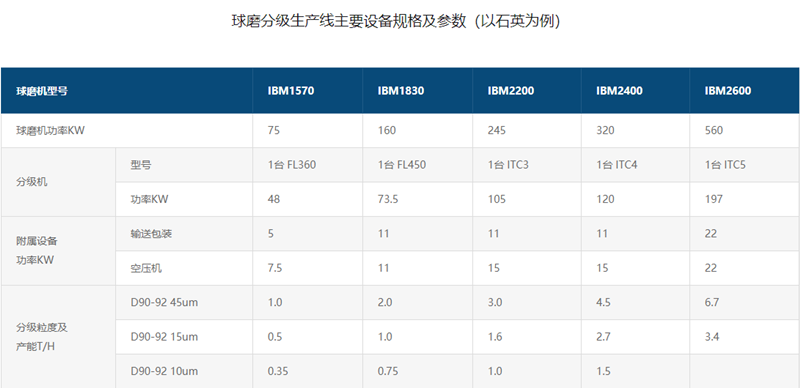 工藝流程主要包括破碎(一般采用兩段破碎)、研磨、分級、包裝、料倉、輸送、提升等。球磨機后可接多臺分級機并聯(lián)分級,也可接多臺串聯(lián)分級,同時生產(chǎn)多個粒度號的產(chǎn)品。球磨機與分級機組成一個閉路循環(huán)系統(tǒng)。