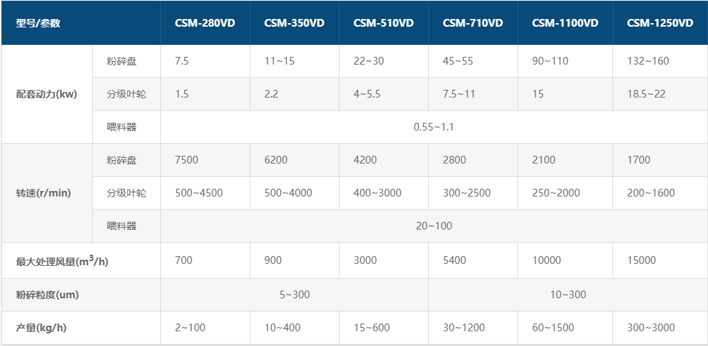 物料由加料系統均勻的送入粉碎室,受到高速旋轉的粉碎盤的強烈沖擊,同時受到離心力的作用,與粉碎齒圈發生碰撞,受到剪切、摩擦、碰撞等多種綜合力的作用,使物料粉碎,被粉碎的物料隨氣流運動到分級區,通過變頻調節的分級輪,對粗細物料進行分離,符合細度要求的產品隨氣流進入旋風收集器和除塵器收集,粗顆粒返回粉碎區繼續粉碎。