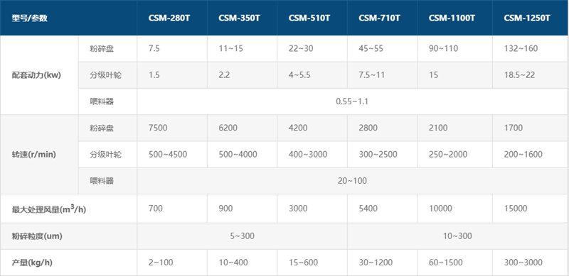 內(nèi)含分級裝置,產(chǎn)品粒度D90:10-45微米之間可調(diào),粒形好,粒度分布窄。