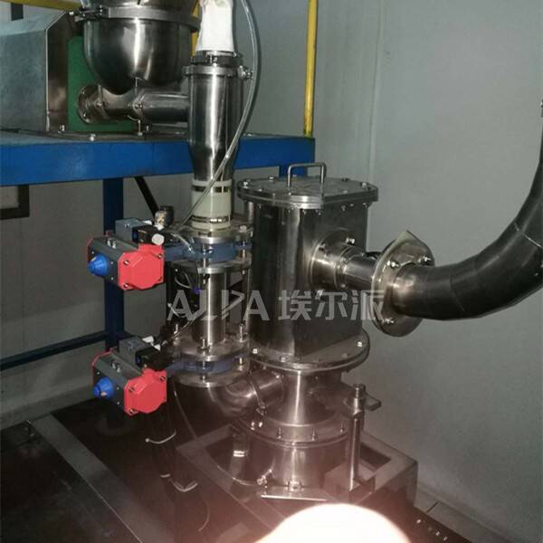 埃爾派粉末涂料粉碎機主要由主機、旋風分離器、排料機、旋風篩、震動篩、自動稱量系統(tǒng)、脈沖除塵器、引風機和自動控制等部分組成。由于該機組在篩選過程中同時設有旋風篩和振動篩,控制了由于篩網(wǎng)破碎及脫落造成的成品粉中的顆粒。在振動篩下加裝自動稱量系統(tǒng),可自動進箱、放料、排塵、計量。